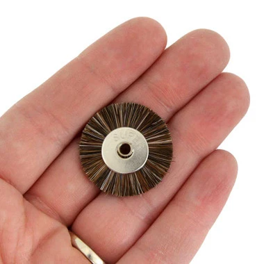 High quality brushes have a steel hub with a 3/32″ hole. Use on flexshaft or motor tool for cleaning and polishing hard to reach areas. These brushes are 1″ diameter and are available in extra soft, soft, medium, or stiff texture. Sold by the dozen and include one 3/32″ mandrel.