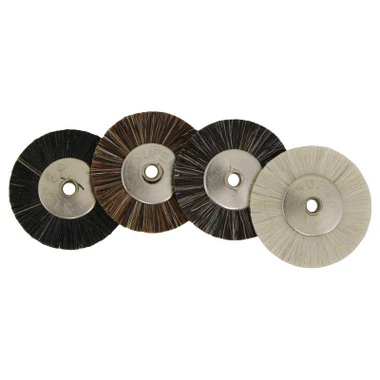 High quality brushes have a steel hub with a 3/32″ hole. Use on flexshaft or motor tool for cleaning and polishing hard to reach areas. These brushes are 1″ diameter and are available in extra soft, soft, medium, or stiff texture. Sold by the dozen and include one 3/32″ mandrel.