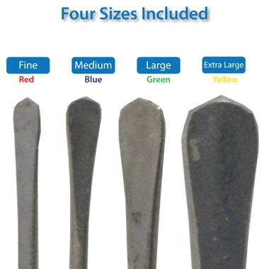 This popular selection of 4 oilers includes one each of Yellow (Very Large), Green (Large), Blue (Medium), and Red (Fine). Each dip oiler has a hexagon shaped body to prevent them from rolling off the table and each are supplied with a cover that will protect the tip of the oiler. The handles and covers are plastic and are made in Switzerland. This is a must have set for precision oiling of watch movements and other fine parts.