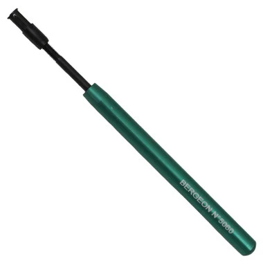 This Swiss made tool removes hands quickly and safely, especially on those chronographs and timers. Simply place the tool under the hand – as the handle is turned, the tip threads down to press against the center post and evenly lifts off the hand. Solidly built; aluminum body has a comfortable feel.