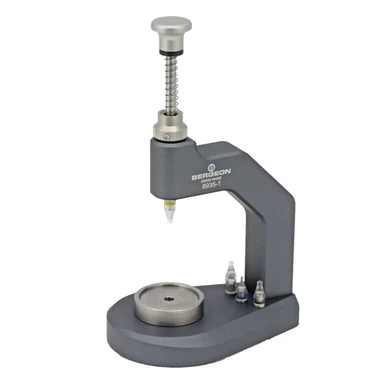 This Bergeon tool was designed to make watch hand fitting as simple as possible. This hand press can be used when pressing hands in both wrist watches and pocket watches. It comes with five different clear synthetic material tips and has a plunger and spring to make hand setting even easier. Hand setting tips friction into place for quick change. Bergeon 7100 series movement holders are compatible with the 31mm base.Â