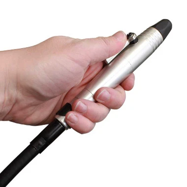 This quick change handpiece is lightweight and contoured in shape to provide an ergonomic grip. Features a ‘quick-release collet for 3/32’ (2.35mm) burs, drills and accessories. Requires just 1/4 turn of the release lever to change tools. Fits Eurotool and Grobet flexshafts.