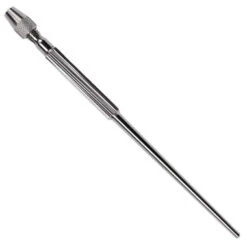 Thin pin vise with conical fluted nickel plated handle and round head. Screw chuck has a capacity of 0-0.70mm. Securely holds drill bits, broaches, earring posts, wire, watch winding stems and more.