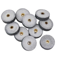 Use for deburring and finishing metals and plastics. Hard square edged wheels. Mizzy wheels keep the grinding process cool and will produce a matte finish. Pin hole in center is used for mounting on a miniature mandrel. You can use a file to shape or true up the wheels.