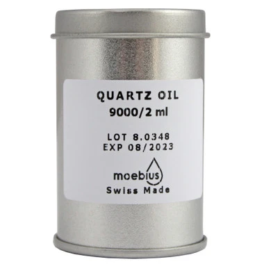 Moebius 9000 synthetic watch oil was specially designed for use on quartz analog watches particularly on the rotor bearing, click wheel, and gear train. It is a non-spreading watch oil that is long lasting with good viscosity and pressure resistance. Also effective for use under wet conditions, this oil is ideal for regulating parts as well as for low temperature applications.