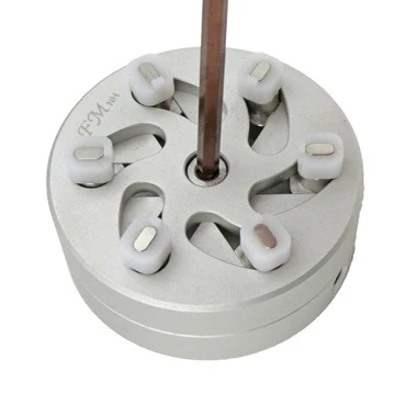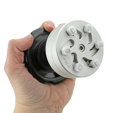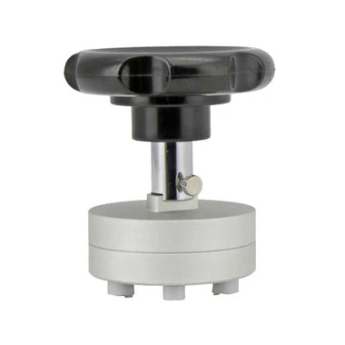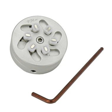 This solid aluminum fixture was designed to open PP World Time® case backs. It is used with the included hand held opener. Features six steel, delrin wrapped posts to protect case back from scratches. The delrin tips are rectangular and measure 2.4 x 1.4mm. The tool easily adjusts from 23mm to 39mm (measured across, outside edge of tips) with a hex screw and included wrench. Although developed for Patek watches, it can be used on other fine brands to avoid damage to case back; a well made, professional quality opener.