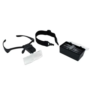 This innovative magnifier is light weight and comfortable. Supplied with 5 different lenses with a magnification range of 1.0x to 3.5x. Can also be worn with the included headband; two bright LED’s provide illumination.