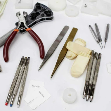 These tools will allow you to open most any type of watch and service things like; replacing watch gaskets, replacing watch battery, replacing watch crystal, replacing watch crown, replacing watch movement, sizing watch band, replacing watch band, replacing or adjusting watch band clasp, fitting watch hands, removing watch band links, and more. You will find everything you need here. Ideal for traveling or using in fairs, kiosks or as a hobby. Â