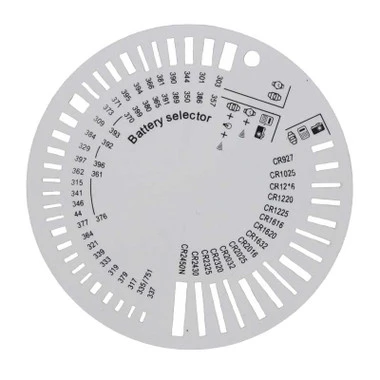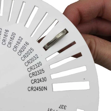 This convenient tool accurately identifies watch button cell batteries by size. There are openings for a full range of silver-oxide and lithium button cells. Each watch battery stock number is clearly printed on the plastic making it easy to order your replacement cell. Now, you don’t have to throw away your watch or electronic device when your button cell numbers are worn or missing because with the Battery Selector you still have a way to correctly identify and replace them using the exact size.