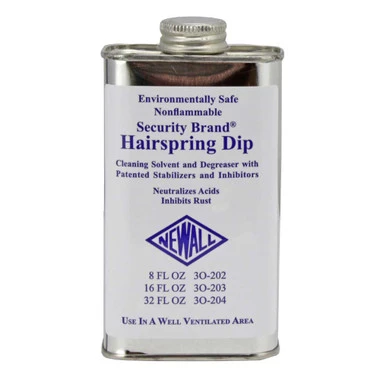 This New-Dip hairspring cleaner is an environmentally safe cleaning solvent and degreaser. It works fast to clean your small watch hairsprings and then dry quickly to allow you to continue your repair work. It neutralizes acids and inhibits the formation of rust to extend the life of your watch.